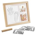 Migimi Baby Handabdruck und Fußabdruck, Baby Hand und Fuß Gipsabdruck Abdruckset, Holz Bilderrahmen Fussabdruck Set mit…