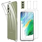 Mutoy Schutzfolie mit Samsung Galaxy S21 FE Hülle, 2 Schutzfolie + 2 Kamera Folie + 1 TPU Hülle, 9H HD Klar Displayschutz Blasenfrei, Weiche TPU Silikon Case Cover