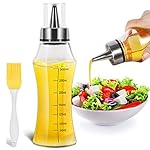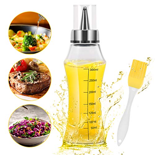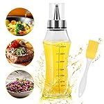 Gifort Ölflasche 400ML, Auslaufsicher Essigspender Ölflasche Glas mit Bürste, Edelstahlglas Oliven Öl Behälter BPA Frei Kochenfür BBQ Salat Braten
