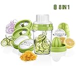 【8 IN 1 Muiltifuction】 8 Optionen, um alle Ihre Anforderungen in einem platzsparenden Küchengeräteset zu erfüllen. Gemüsespiralschneider, Reibe, Entsafter und mehr. Sie müssen nur das Kit-Zubehör wechseln, um diese verschiedenen Funktionen zu erfüllen.